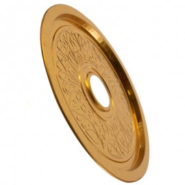 Plato de la marca Kaya Shisha modelo Arabic Gold, es un plato para la ceniza de los carbones el cual podemos combinar con cualquier tipo de shisha, pero en especial con las de estilo tradicional, ya que tiene unos detalles y un corte muy tradicional.Es de color Dorado y tiene unos detalles grabados muy bonitos echos a mano y muy trabajados.Está fabricado con material resistente lo cual hace que podamos poner los carbones encima del plato sin ningun tipo de problema.Medidas: