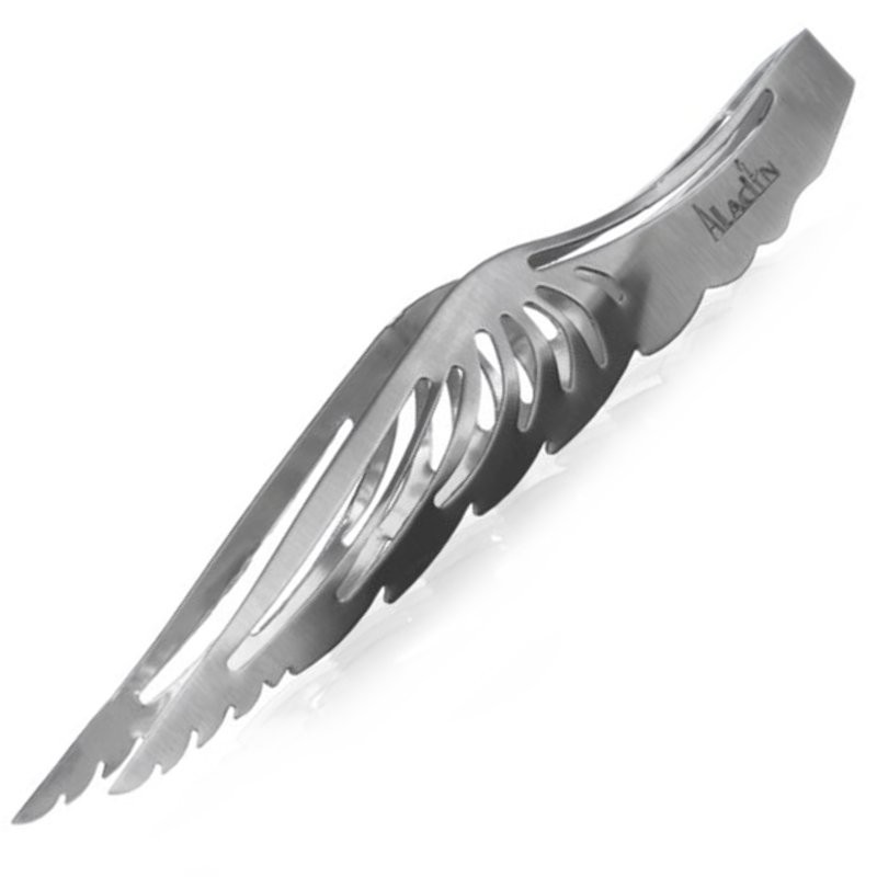Pinzas de la marca Aladin modelo Wing silver son perfectas para ayudarte a coger tus carbones de forma segura.Están realizadas en acero inoxidable y se caracterizan por su forma ya que tienen un diseño fuera de lo común.Tendremos complemento exclusivo para algo tan simple como es coger los carbones.