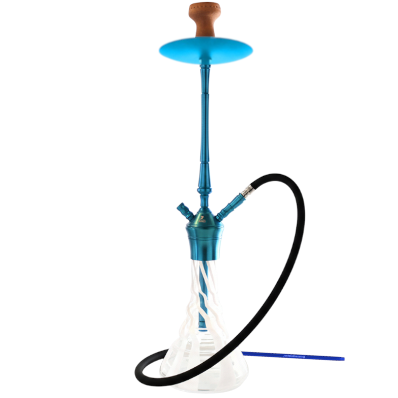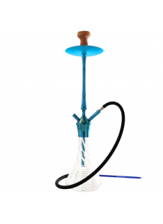 Cachimba Kaya, modelo ELOX Zebra 630 Lance Schliff Blue 2S.Es una shisha de alta calidad cuyo diseño es innovador y de un rendimiento increible. Las principales características que podemos apreciar de esta shisha es su cuerpo de aluminio anodizado con un diseño simple pero perfecto y espetaculares lineas curvadas.Este modelo incorpora difusor para disminuir el ruido y así hacer una sesión mas tranquila.La base de cristal con franjas de color blancas en forma de espiral ascendente, el diseño la hace una base muy llamativa