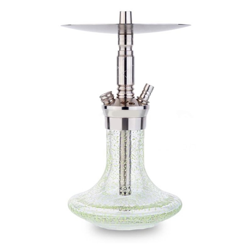 Cachimba modelo Mini M-5 Glow in the dark, de la marca Alemana WD Hookah.Esta marca se caracteriza por sus cachimbas de acero inoxidable de alta calidad, ahora nos presentan el modelo mas pequeño de su gama, con tán solo 27 cm de altura.En este nuevo modelo podemos ver principalmente un cambio en la base, ya que nos encontramos con el modelo "Glow", el cual da nombre a los picmentos fluorescentes que tenemos incrustados en la base para que se ilumine cuando haya poca luz.Una de las caracterícticas principales es el difusor a rosca incorporado, que podrá quitar o poner a su gustoTodas su piezas están fabricadas en acero inxidable de primera calidad, una garantía que no va a sufrir daños por el agua o desgaste por el tiempo. Incluye:
