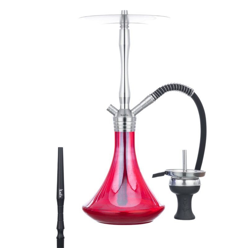 El modelo MVP 460 de Aladin es una shisha de acero inoxidable V2A de alta calidad. Es impresionante en todos los sentidos y es perfecta para uso tanto en exterior como shisha interior. En este modelo veremos una fijación del mastil y plato en forma de rosca.El vidrio del MVP Shisha está hecho de un cristal robusto con efecto brillante y el tubo de inmersión tiene un difusor integrado que se puede ajustar según se desee. El difusor permite un burbujeo silencioso de la cachimba. El cierre del MVP de Aladin es una rosca ancha de 360° que conecta el mástil con la base de una forma hermética y segura.El sistema de cámara cerrada permite que el humo que queda en la base salga fácilmente con un simple soplido.La cachimba es completamente desmontable, lo que es ideal para una limpieza a fondo.Detalles:- Altura (sin cazoleta): aprox. 46 cm.- Piezas metálicas de material: acero inoxidable V2A.- Material cazoleta: arcilla- Difusor ajustable integrado.- Conexiones: 2- Longitud de la manguera: aprox. 150 cm.- Longitud de la boquilla: aprox. 24 cm.Incluye:- Cazoleta- Mástil- Base de cristal- Tubo de inmersión con difusor ajustable- 1x adaptador de manguera- 1x conexión de manguera- Manguera de silicona suave al tacto- Boquilla de aluminio- Plato- Muelle anti pliegue - Pinzas