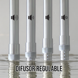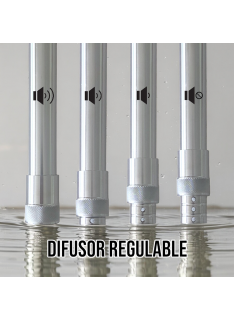 Difusor ajustable en diferentes alturas para disminuir el sonido y regular la restricción del flujo de humo a su gusto.