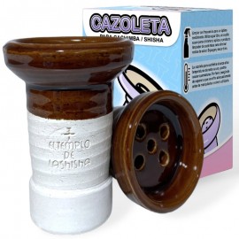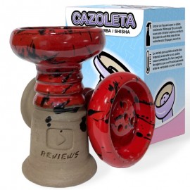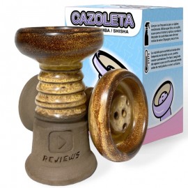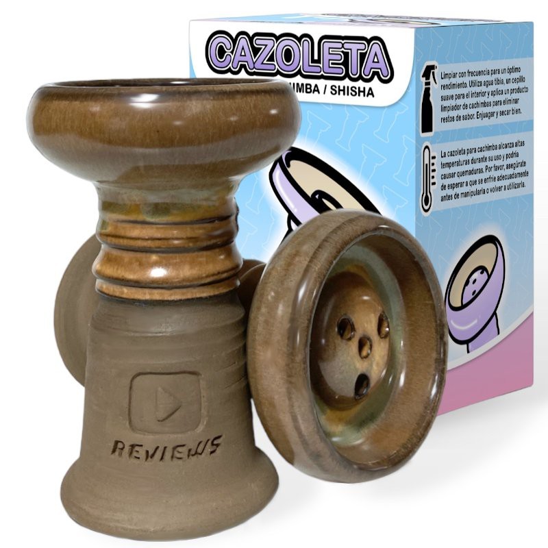 En esta ocasión tenemos el placer de presentaros la nueva cazoleta llamada "REVIEWS BOWL".En lo que consta de materiales podemos apreciar que dispone de 2 tipos de barros mezclados previamente quedando homogéneo, en concreto maneja un 80% de barro negro y 20% de barro blanco chamotado.También podemos apreciar el esmalte, es de muy buena calidad y tiene tonos únicos e irrepetibles, ya que todas están hechas a mano por uno de los mejores alfareros del panorama Español.Decidimos decantarnos por una cazoleta tipo "treepo" ya que el rendimiento con pro-vost o rejilla del screen es brutal, por lo cual podemos apreciar un phunnel muy peculiar con 4 agujeros realizados a conciencia para que formen una "Y".Podemos ver a simple vista que los bordes de nuestra cazoleta son muy redondeados y lisos, y esto no es una casualidad, está pensado para que podamos tensar el papel de aluminio de la manera más cómoda posible y sin romper papel de aluminio.Medidas: