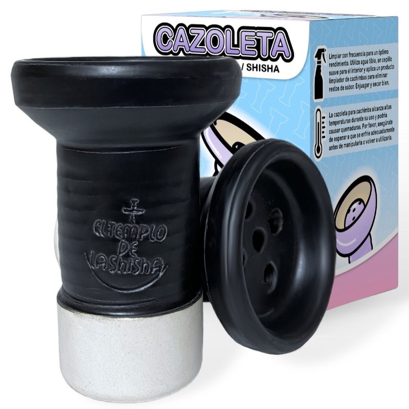 Volvemos a hacerlo, después del éxito obtenido con el anterior modelo hemos decidido hacerle un par de modificaciones a una de las cazoletas más queridas por nuestros clientes llamada "TURK VINTAGE".Con respecto a la anterior turk, podemos ver varios cambios significativos a simple vista, ya que se a reducido la capacidad de carga en un 40% para poder así, disfrutar de las prestaciones de la cazoleta sin gastar demasiado tabaco, lo que conlleva a sesiones más cortas pero de excelente calidad.Está fabricada en barro blanco para obtener una calidad óptima en su rendimiento, este material nos facilitará la gestión del calor, es decir, tendremos una fumada con un calor muy homogeneo. Con una buena gestión de calor podremos sacar de cada tabaco su sabor al 100%.Es una cazoleta de estilo tradicional, es decir, tiene 5 agujeros en la parte inferior de la carga para generar un correcto flujo de aire (Recomendamos que la carga sea "Aireada" para no taponar dichos orificios). Además está esmaltada perfectamente para que no se filtre la melaza y sea mucho más fácil la limpieza de la misma.Podemos destacar que con papel de aluminio, screen, Pro-Vost, tendremos un rendimiento espectacular, junto a una duración de la sesión de 1 hora (Dependiendo del tabaco que pongamos). Y en esta ocasión no podremos utilizar Gestor de calor (kaloud) ya que el diámetro de la cazoleta es inferior al del gestor.Recomendamos el uso de esta cazoleta con carbón natural, ya que con carbones autoencendibles no vamos a poder exprimir todas sus cualidades.Dimensiones: