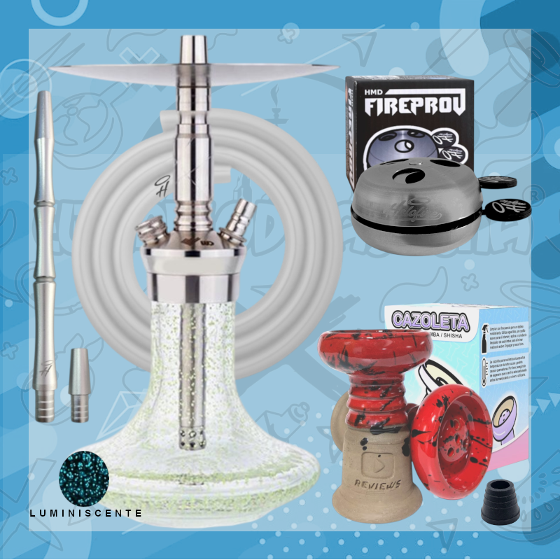 Últimas unidades en stockPack de cachimba Mini Vitta y accesorios que incluye: cachimba + Boquilla + Pinzas + Manguera + Cazoleta + Carbòn 26mm + Kaloud.