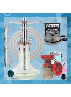 Pack de cachimba Mini Vitta y accesorios que incluye: cachimba + Boquilla + Pinzas + Manguera + Cazoleta + Carbòn 26mm + Kaloud.